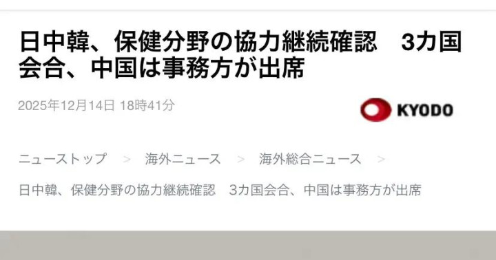 就在中日因高市早苗涉台言论闹得不太愉快的时候,一个容易被忽略的细节浮出水面——12月14日,中日韩三国卫生部门悄悄在韩国开了一场会,还发了一份联合声明。